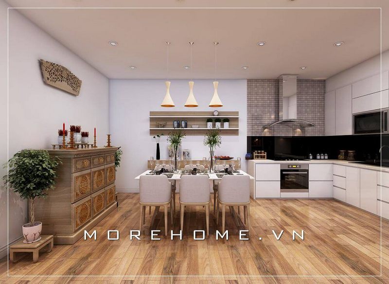 Thiết kế nội thất phòng ăn liền bếp hiện đại, đơn giản và tiện nghi cho nhà chung cư