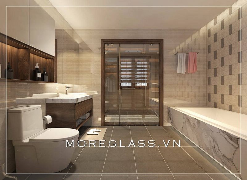 Đừng ngần ngại sử dụng các loại thiết bị đa chức năng để tiết kiệm diện tích và mang lại sự tiện ích cho nhà tắm của bạn. Kính cường lực trong suốt có thể được áp dụng để làm mặt bàn hay vách ngăn trong nhà tắm, giúp không gian trở nên sang trọng và hiện đại. Hãy luôn cân nhắc kĩ lưỡng về kiểu dáng và kích thước để tạo ra không gian nhà tắm đẹp mắt và công năng cao.