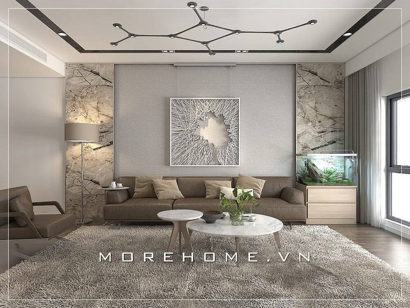 Sử dụng vật liệu tự nhiên trong thiết kế phòng khách không chỉ mang lại vẻ đẹp gần gũi mà còn giúp tạo ra môi trường sống lành mạnh hơn. Gỗ và đá là hai yếu tố chủ đạo thường được các nhà thiết kế ưa chuộng, không chỉ vì tính bền vững mà còn do khả năng dễ dàng hòa quyện với nhiều phong cách khác nhau, từ hiện đại đến cổ điển. Việc kết hợp những loại gỗ như thông hay óc chó với đá hoa cương tự nhiên sẽ tạo nên sự tương phản thú vị giữa độ ấm và cảm giác mát lạnh của từng chất liệu.