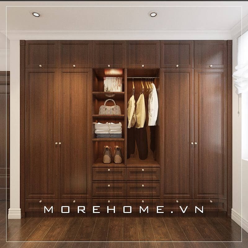 Morehome đề nghị cho bạn một mẫu tủ quần áo gỗ óc chó để sử dụng trong căn hộ chung cư và biệt thự cao cấp.